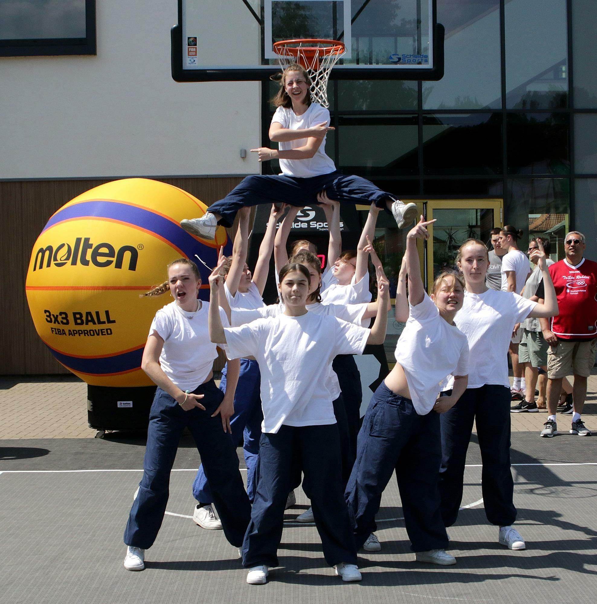 80 Teams kamen am Sonntag, den 11.06.2023 auf den Schulhof der Stadtschule Lübbecke – so viele Teams hatte es in der eher Handball orientierten Gegend im Kreis Minden-Lübbecke bisher bei der NRW3x3Tour nicht gegeben. Die Veranstaltergemeinschaft rund um Hauptorganisator, Timo Kenscher vom TUS Lübbecke, hatte alles perfekt vorbereitet. Pizzawagen, Cafeteria- und Getränkestände luden zum Essen und Trinken ein, die AOK NordWest steuerte mit dem Reaktions-Spiel ein passendes Rahmenprogramm an, ein DJ sorgte für die passende Hiphop Musik. Nach den Grußworten von Bürgermeister, Frank Haberbosch, Prof. Dr. Jens Große (Präsident KSB Minden-Lübbecke) und Jörg Freitag (AOK NordWest) boten die Tanzgruppen „Big Secret“ und „Power Packs“ von der Tanzschule Pazzihall tolle Hiphop Darbietungen.