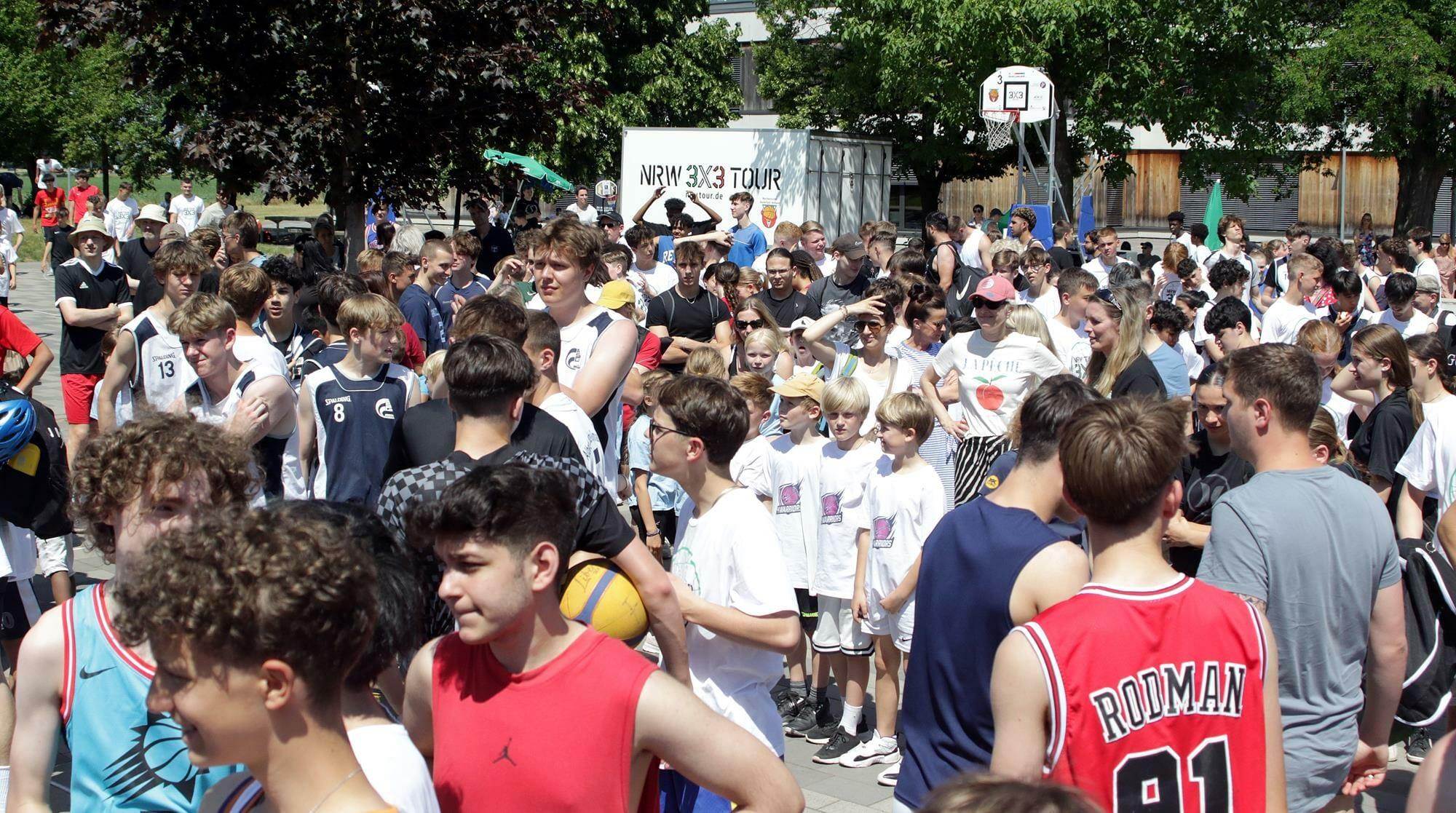 Nach dem Megaevent an Fronleichnam nahmen am Freitag, dem 09.06.2023 weitere 130 Teams bei der NRW3x3@school Veranstaltung teil, die von 30 Schulen aus ganz NRW gestellt wurden. Als Courtwatcher*innen halfen Sporthelfer*innen der Duisburger Schulen, insbesondere Sporthelfer*innen des Albert-Einstein Gymnasiums Duisburg. Damit haben an 2 Tagen 290 Teams = rund 1200 Spieler*innen an den 3×3 Wettbewerben im Rahmen der Ruhr Games teilgenommen!
